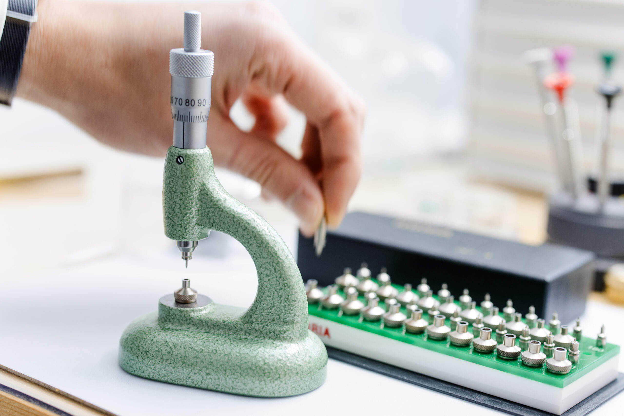 Im Anschluss wird das Werk feinreguliert. Die Gangwerte werden exakt eingestellt und orientieren sich an den jeweiligen Herstellervorgaben.